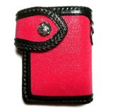 牛革×エイ革スティングレイ レザーウォレット紅 ミドル