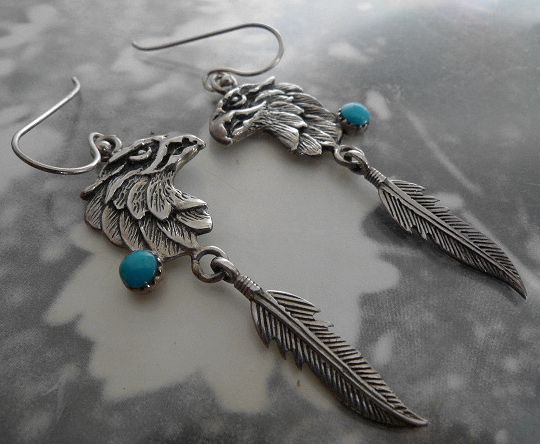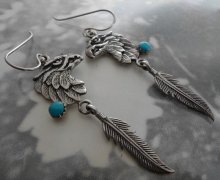 ホーム | シルバー 小物類 > ピアス(フックタイプ)シルバーピアス ターコイズ付イーグルフェザー