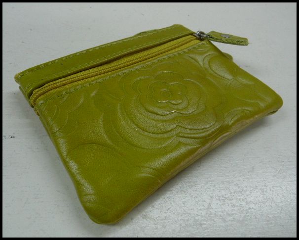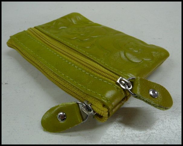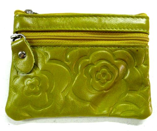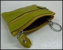 ホーム | レザーウォレット > コインケース牛革花柄型押しコインケース イエローグリーン