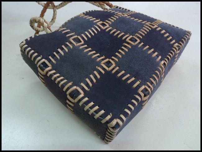 牛革パッチワークハンドバッグ レザーフラワーチャーム付[090140]