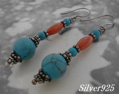 ホーム | シルバー 小物類 > ピアス(フックタイプ)シルバーピアス ターコイズ×コーラルE