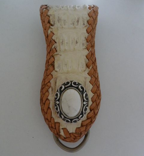 ホーム | レザーグッズ > ベルトループ牛革×ワニ革クロコダイル白 ベルトループ silver925ホワイトターコイズコンチョ付